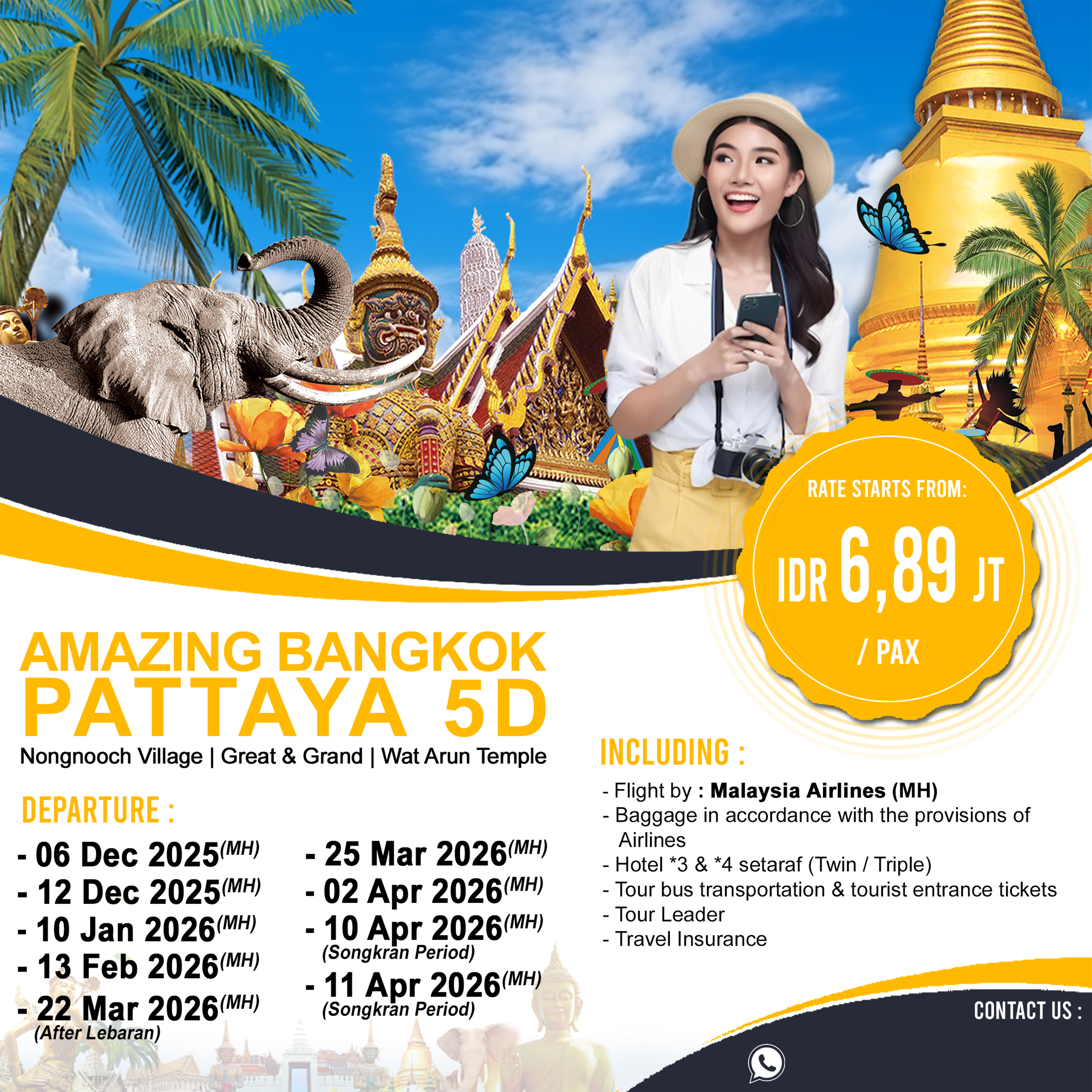 Setelah sarapan pagi, perjalanan menuju Bandar Udara Internasional Suvarnabhumi untuk kembali ke Jakarta dengan. Sampai jumpa di perjalanan selanjutnya.
