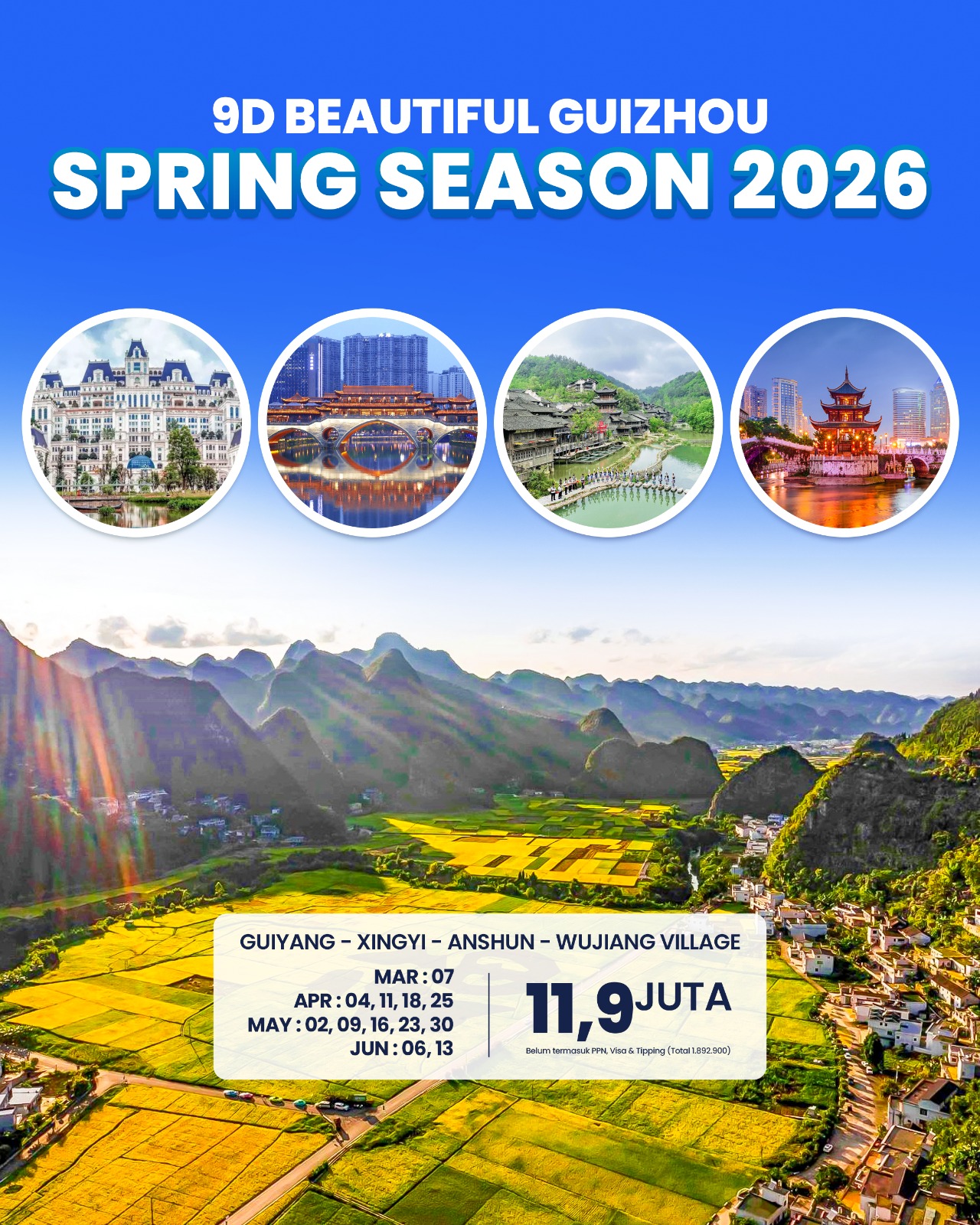 Pada hari ini Anda berkumpul di Bandar Udara Soekarno Hatta untuk memulai perjalanan menuju Guiyang, China. Setibanya check-in hotel dan ber-isitrahat