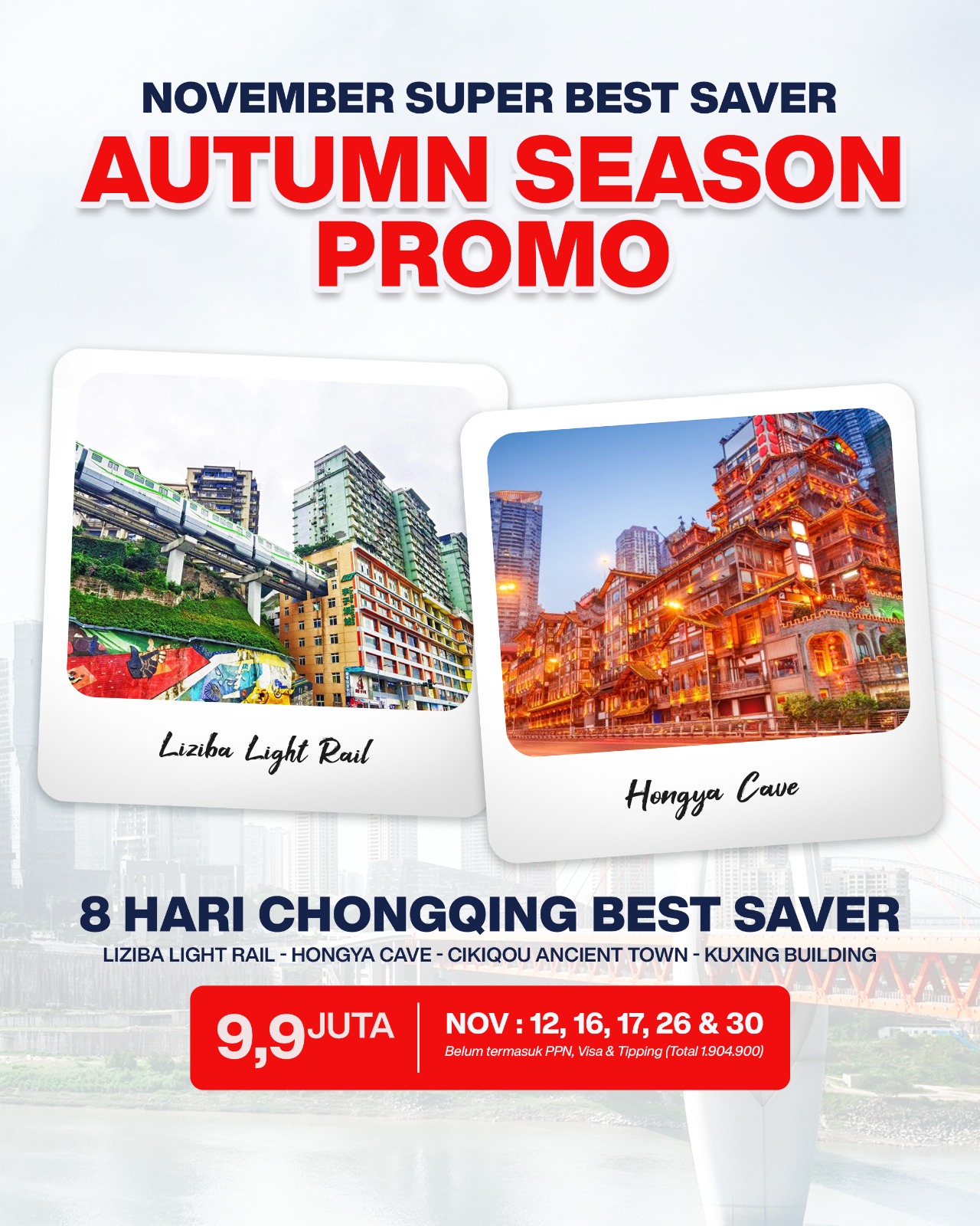Pagi ini, Anda memiliki waktu bebas (free time) untuk menjelajahi Chongqing sesuai keinginan atau Anda dapat mengikuti OPTIONAL TOUR yang di tawarkan.