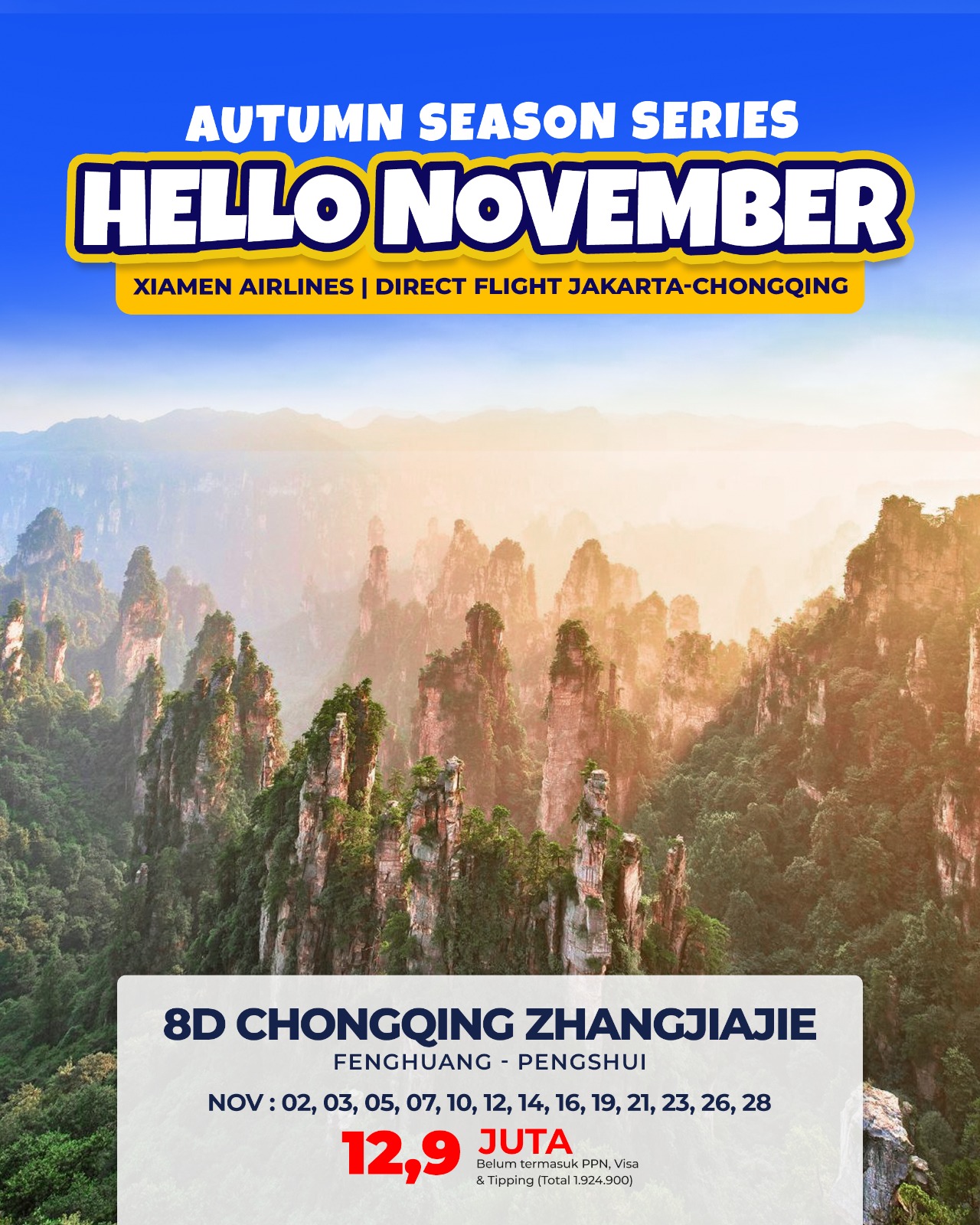 Pada hari ini Anda berkumpul di Bandar Udara Soekarno Hatta untuk memulai perjalanan menuju Chongqing, China. Setibanya check-in hotel dan ber-isitrahat