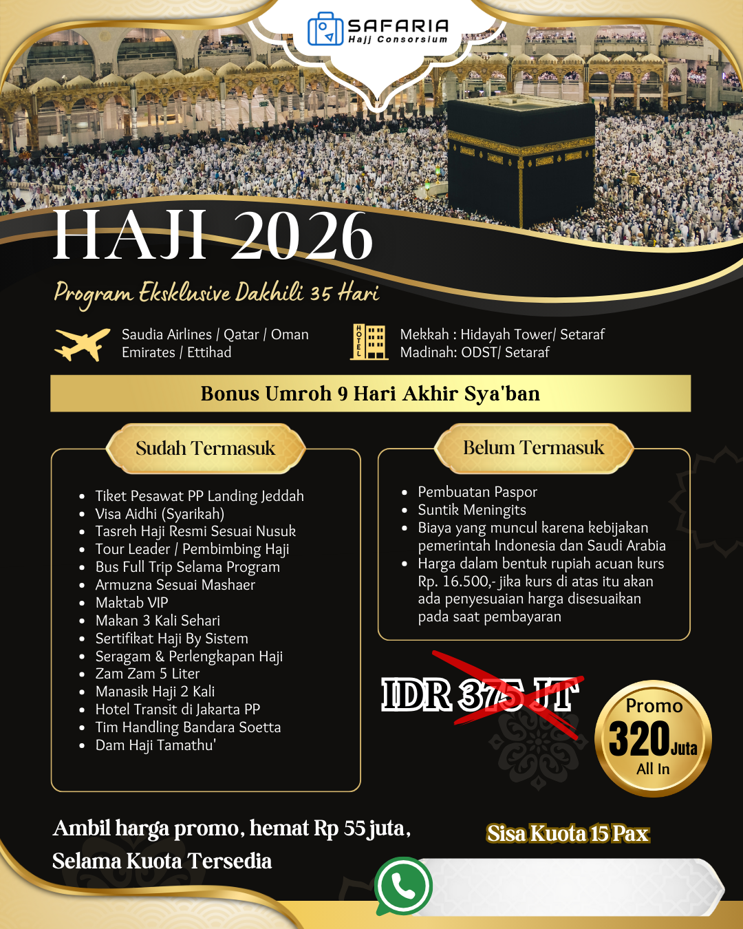 Paket Haji 2026 Hemat, Bersahabat dan murah Program Dakhili belum termasuk :
