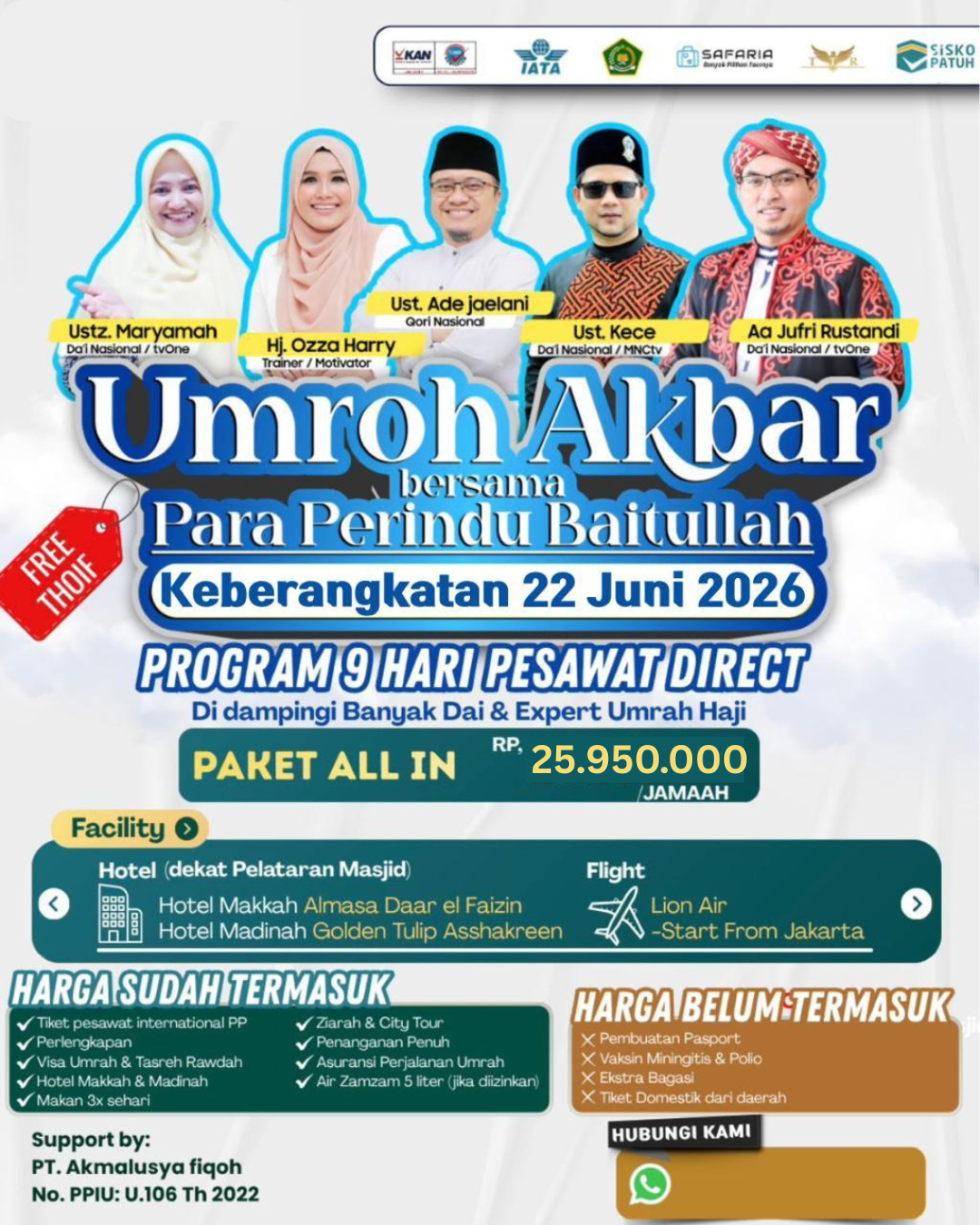 Jakarta Pukul 08:40 WIB Tiba di Bandara Soekarno-Hatta CGK Proses imirgrasi, Pembagian Zamzam, Bagasi. Maka berakhirlah program perjalanan umroh Bersama SAFARIA, Semoga mendapatkan umroh yg mabruroh.